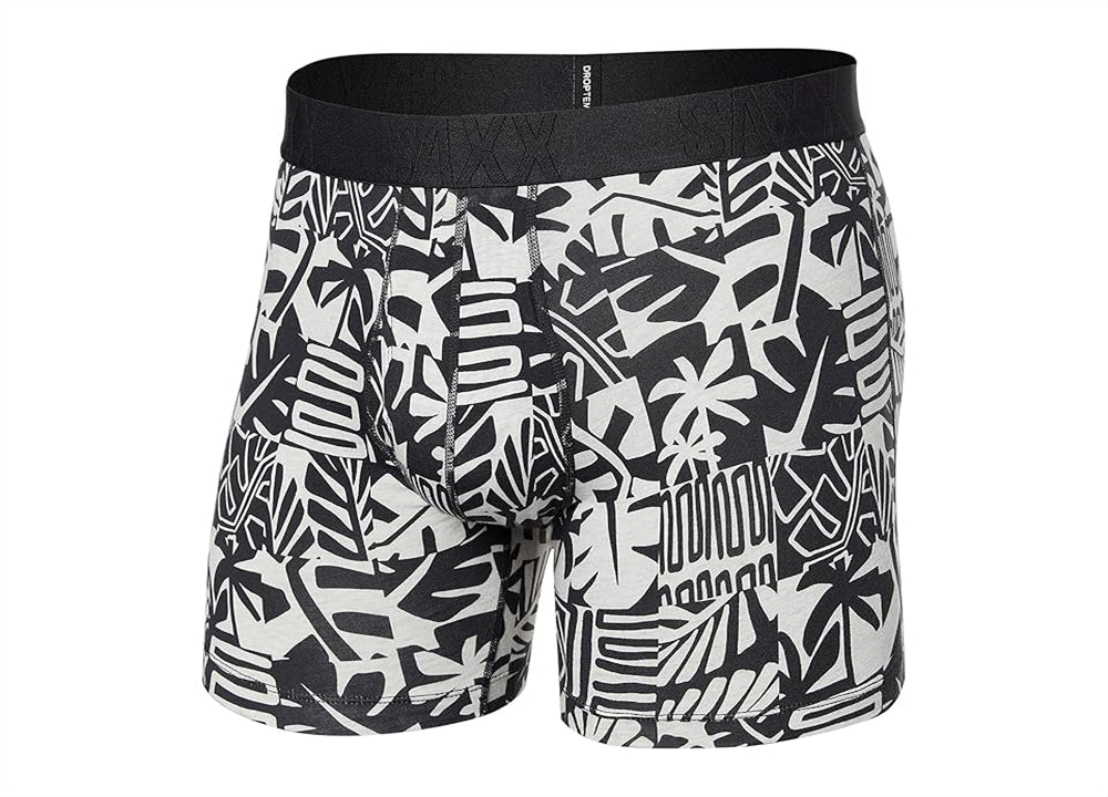Tecido de algodão refrescante | Design de braguilha | Estampa de azulejos de praia | Cós preto | Tecnologia antiumidade | Ajuste confortável | Material de secagem rápida | Costuras flatlock | Bolsa BallPark Pouch™ | Cós antirrolagem | Propriedades resistentes a odores
