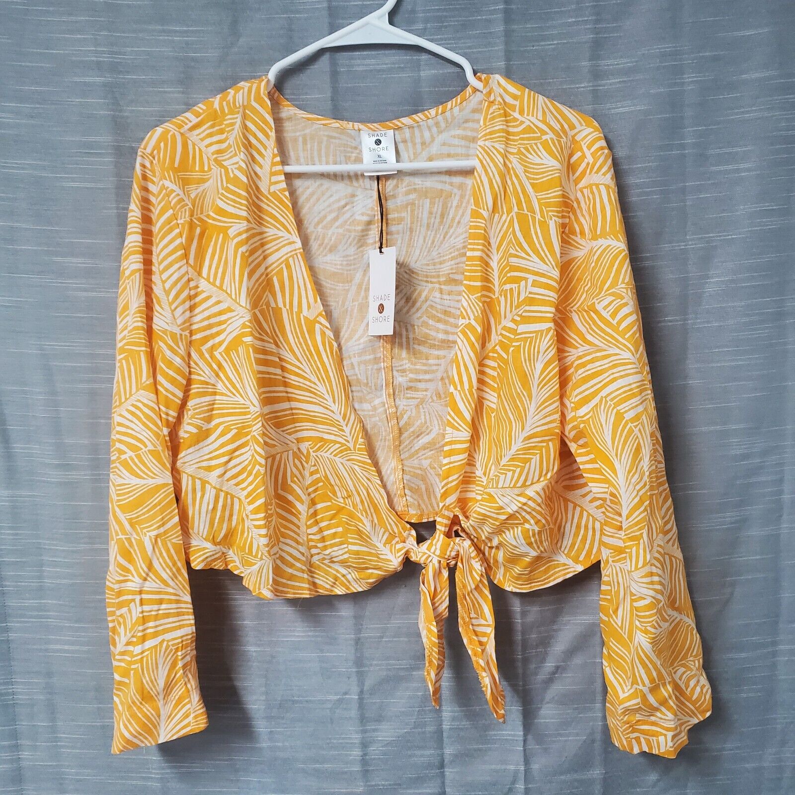 Tamanho GG feminino | Marca Shade & Shore | Cor laranja vibrante | Design de manga comprida | Estilo com amarração frontal | Blusa de saída de praia | Feito de material durável | Ajuste confortável | Fácil de lavar | Uso versátil