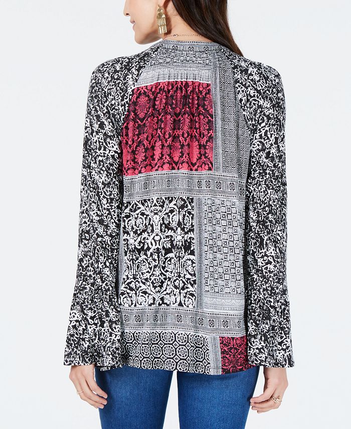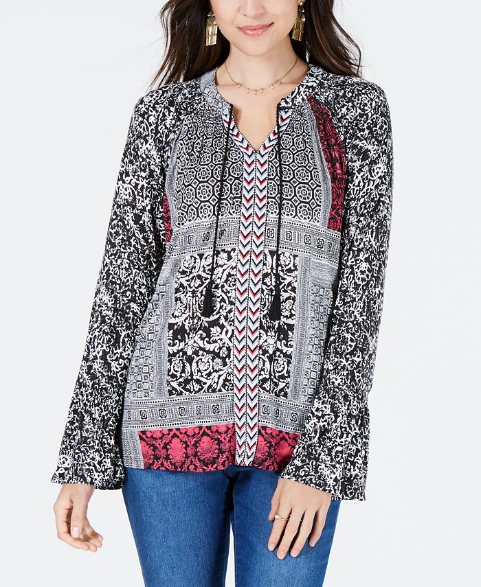 Blusa camponesa com estampa de manga sino e estampa pequena Style & Co., vários tamanhos P/M