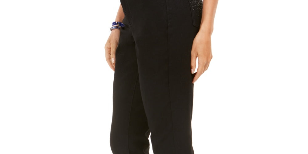 Calça jeans skinny com bolso brilhante e ajuste curvilíneo feminino Style & Co, preta, tamanho 8