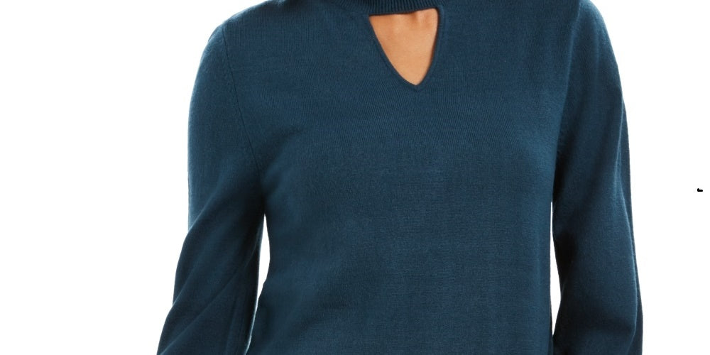 Suéter feminino estilo & co com decote careca e abertura nas costas, azul, tamanho XX-G