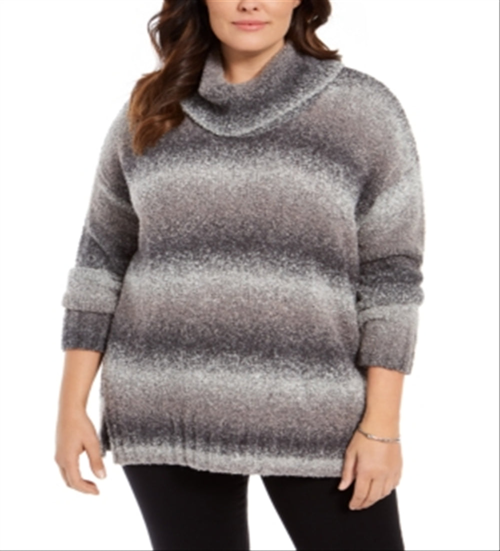 O suéter plus size da Style & Co. aposta no estilo aconchegante com um decote amplo e bainha vazada. Use-o para o escritório com calças ou aqueça seus dias de folga com jeans. | Decote vazado | Listras ombré; bainha vazada | | Acrílico/poliéster | Lavável à máquina | Importado