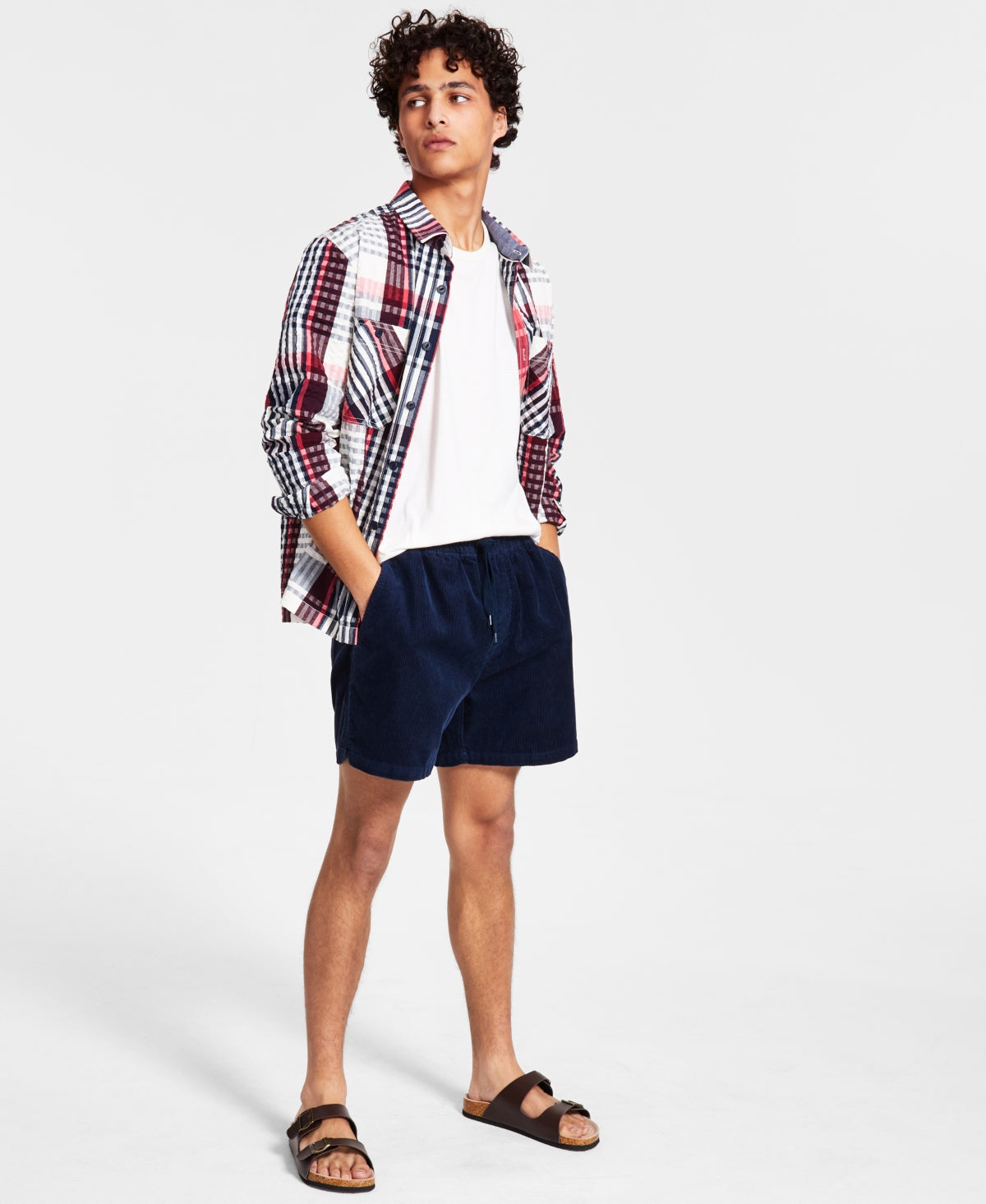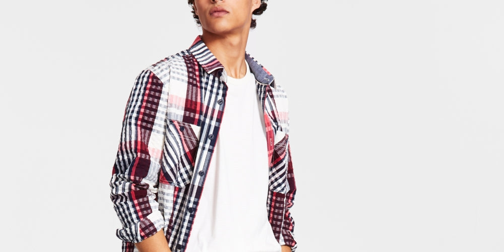 Exiba vibrações coloridas e prontas para o clima quente com o xadrez ousado e o rico acabamento em seersucker da soberba camisa de manga comprida Aaron da Sun + Stone