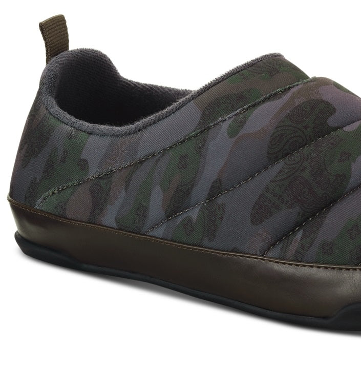 Um corpo acolchoado confere ao confortável chinelo Derek da Sun + Stone um estilo mais moderno. | Chinelo de bico redondo | Puxador no calcanhar; cabedal acolchoado | Colarinho acolchoado | Cabedal de poliéster; forro de algodão; sola de borracha | Limpeza localizada | Importado