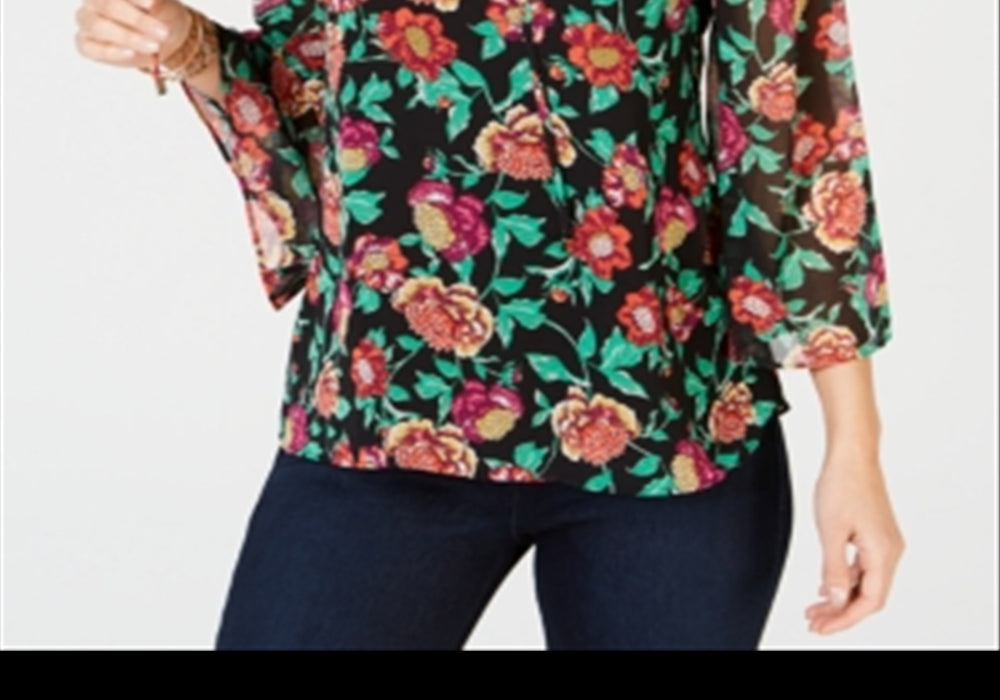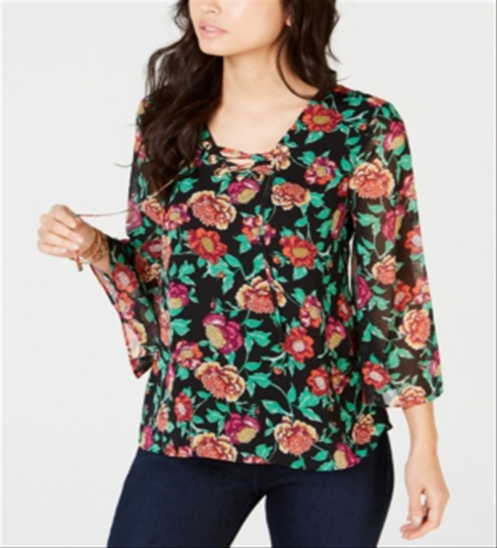 Thalia Sodi Top feminino com manga 3/4, decote em V, com cadarço, estampado, vários tamanhos P