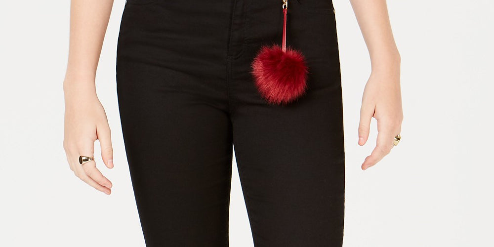 Cintura alta; ajuste fino nos quadris e coxas; perna skinny | Costura interna aproximada: 27 pol. | Fecho de botão frontal com zíper; passantes para cinto | Estilo com cinco bolsos; dois bolsos traseiros | Pompom de pressão incluído; a cor pode variar | Lavagem colorida | Algodão/poliéster/viscose/elastano