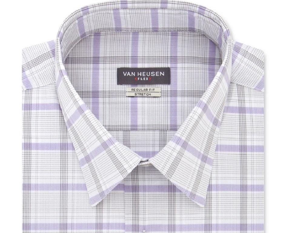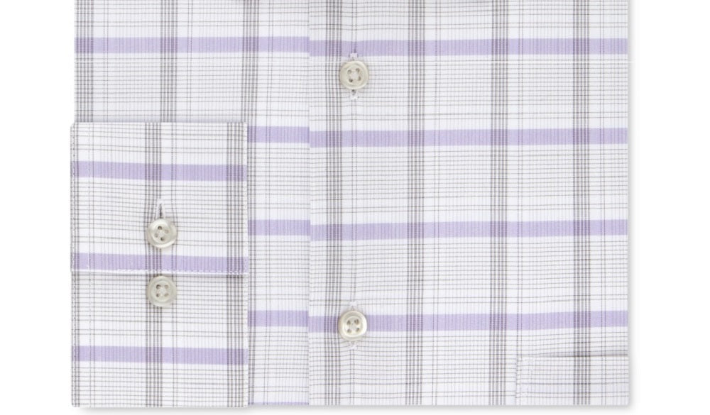 O ajuste clássico, também conhecido como ajuste regular, oferece um corte generoso no peito e na cintura para maior conforto geral; possui cavas padrão e mangas mais largas | Gola flexível que se expande até 1,25 cm | Punhos com botões tipo barril | Padrão xadrez; bolso aplicado no lado esquerdo do peito | Desempenho elástico; tecido antirrugas | Algodão/poliéster/elastano