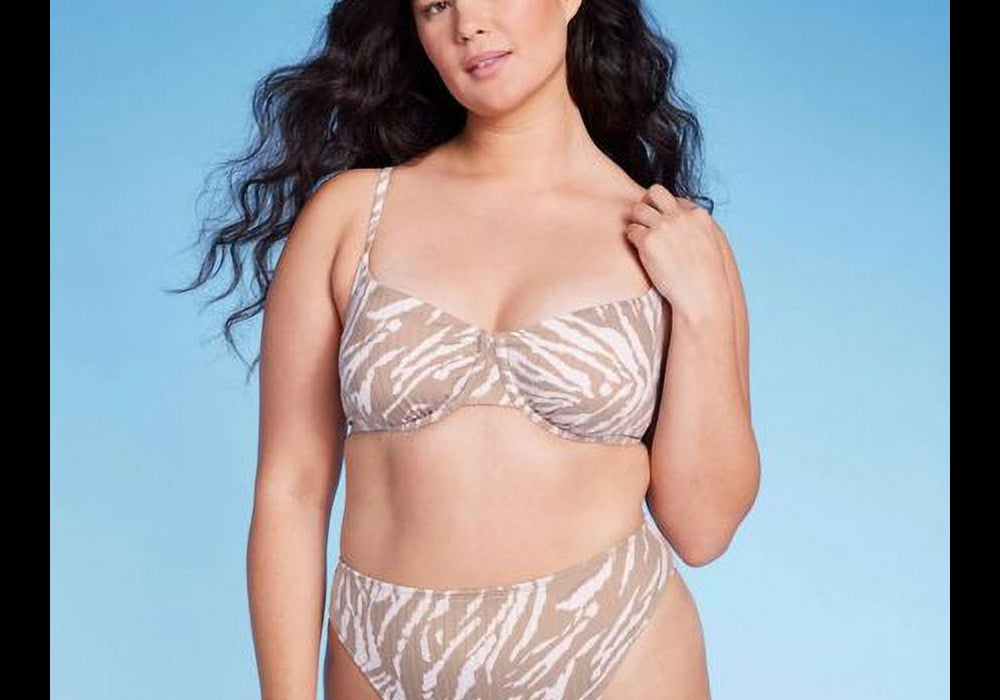 Design com estampa animal | Tecido canelado | Suporte com aro | Estilo bralette | Alças ajustáveis | Ajuste confortável | Tamanho XXS | Marca Wild Fable | Cor bege