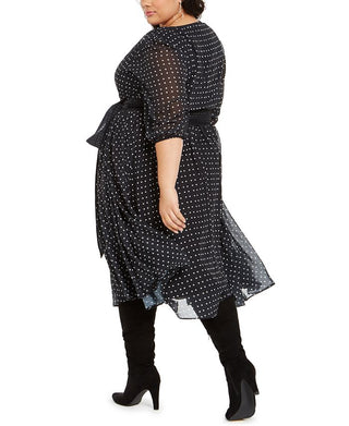 Vestido feminino com cinto e estampa de bolinhas da NY Collection, preto, tamanho 2X