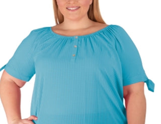 Karen Scott Suéter Feminino Plus com Gola Simulada Azul Tamanho 2X