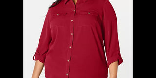 Camisa feminina Charter Club com botões frontais, tamanho vinho, tamanho 1X