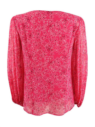 Blusa feminina Alfani com estampa floral e manga plissada, rosa, tamanho pequeno e pequeno
