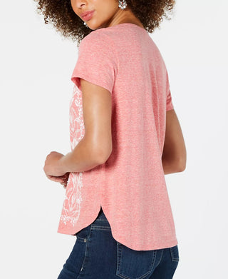 Camiseta feminina pequena com estampa gráfica Style & Co, laranja, tamanho PS
