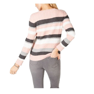 Suéter feminino Karen Scott listrado de algodão com tricô trançado, tamanho extra grande