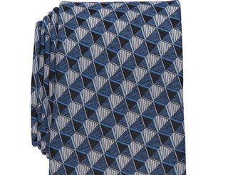 Gravata Alfani Slim Grid Masculina Azul Tamanho Regular