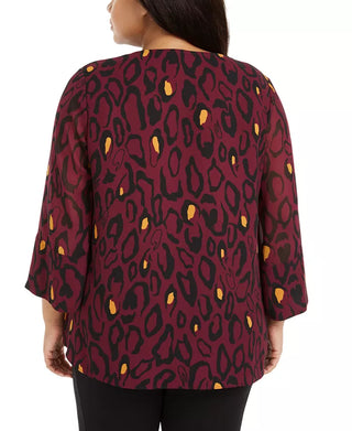 Blusa e colar plus size com estampa animal da coleção feminina JM Collection, roxo, tamanho 3, extra grande