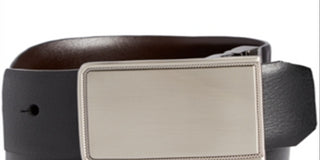Perry Ellis Cinto social masculino de couro com fivela reversível e placa, preto, tamanho 32
