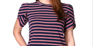 Blusa de malha listrada com manga tulipa feminina Michael Kors, azul, tamanho pequeno grande