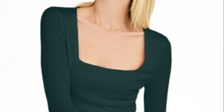 Blusa feminina canelada com decote quadrado da INC International Concepts, verde, tamanho grande