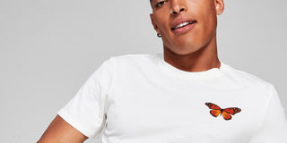 E agora esta camiseta masculina borboleta branca tamanho grande