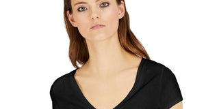 Camiseta feminina com decote em V da INC International Concepts, preta, tamanho grande