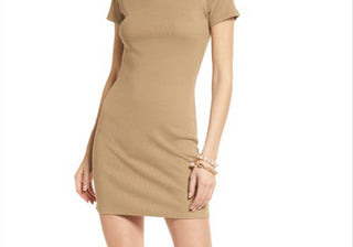 Vestido justo canelado Open Edit em chumbo bege tamanho X-S