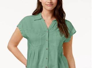 Blusa plissada com mangas e punhos Style & Co feminina, verde, tamanho grande