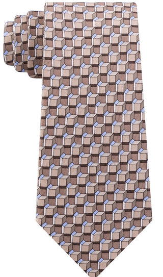 Gravata de sarja de seda com estampa geométrica angular clássica Michael Kors masculina, bege, tamanho regular