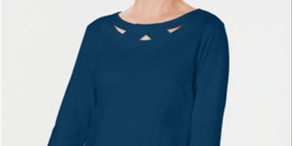 Karen Scott Blusa Feminina Manga Três Quartos Recortada Azul Tamanho XS