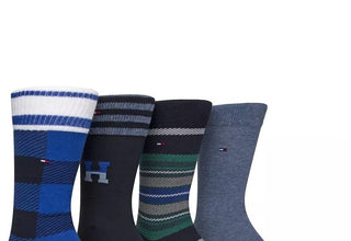Pacote com 4 meias Tommy Hilfiger masculinas confortáveis, azul e preta, tamanho 7 a 12