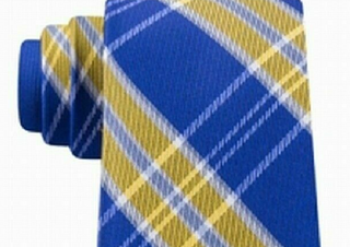 Gravata xadrez masculina Tommy Hilfiger Vincent azul-amarela tamanho único