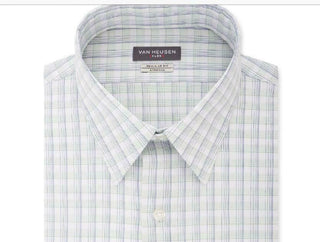 Camisa social masculina Van Heusen Regular Fit Performance Stretch, sem rugas, com gola flexível e micropigmento, tamanho azul, 17,5 x 34 x 35