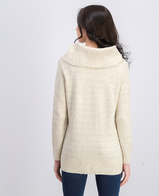 Suéter feminino estilo & co lurex gola alta bege tamanho médio