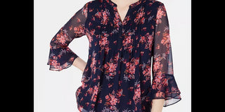 Charter Club Blusa Feminina Floral Pintuck Vermelha Tamanho P