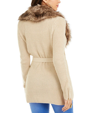 Cardigan canelado com acabamento em pele sintética Thalia Sodi feminino, tamanho médio, dourado