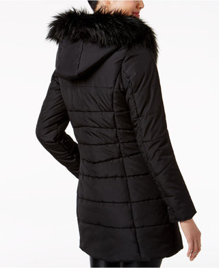 Casaco acolchoado com capuz e acabamento em pele sintética Maralyn & Me Juniors, preto, tamanho pequeno