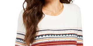 Suéter listrado com tachas feminino Style & Co, branco, tamanho XX-G