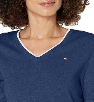 Suéter Tommy Hilfiger Feminino de Algodão com Gola V Azul Tamanho XG