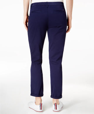 Calça chino reta Tommy Hilfiger feminina Th Flex com punho, azul-marinho, tamanho 16