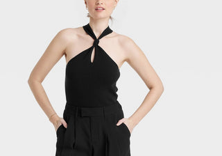 Suéter feminino com decote halter A New Day, preto, tamanho M