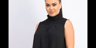 Blusa feminina Rachel Rachel Roy Mindi Smocked com gola alta, preta, tamanho 2, extra grande