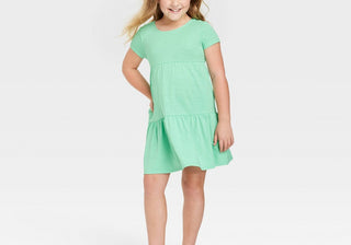 Vestido de malha com manga curta e camadas para meninas Cat & Jack, verde, tamanho G