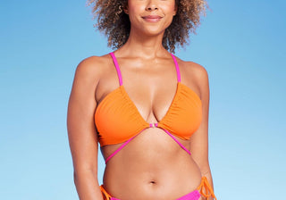 Top de biquíni feminino Shade & Shore com tiras e detalhes em anel, cor bloco, laranja/rosa, tamanho 34DD