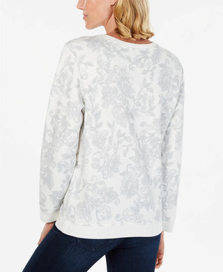 Moletom feminino Karen Scott de lã estampado, branco, tamanho médio