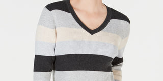 Karen Scott Suéter Feminino de Algodão com Decote em V e Blocos de Cores Marrom Tamanho Médio