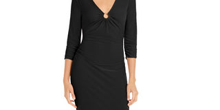 Vestido midi franzido com ferragens de anel feminino INC International Concepts, preto, tamanho grande