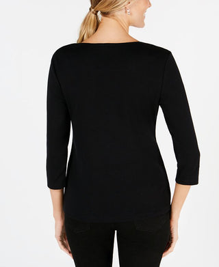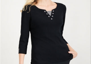 Jm Collection Top com buraco de fechadura e ferragens embelezadas, preto, tamanho 3X