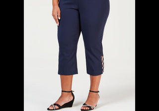 Calça feminina justa com bainha de pressão JM Collection, preta, tamanho médio