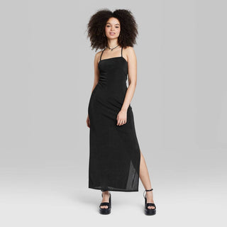 Vestido longo justo feminino Wild Fable XXS preto com amarração nas costas