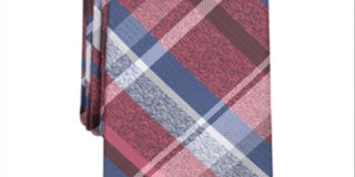 Gravata fina xadrez Perry Ellis masculina Dehaven vermelha tamanho regular